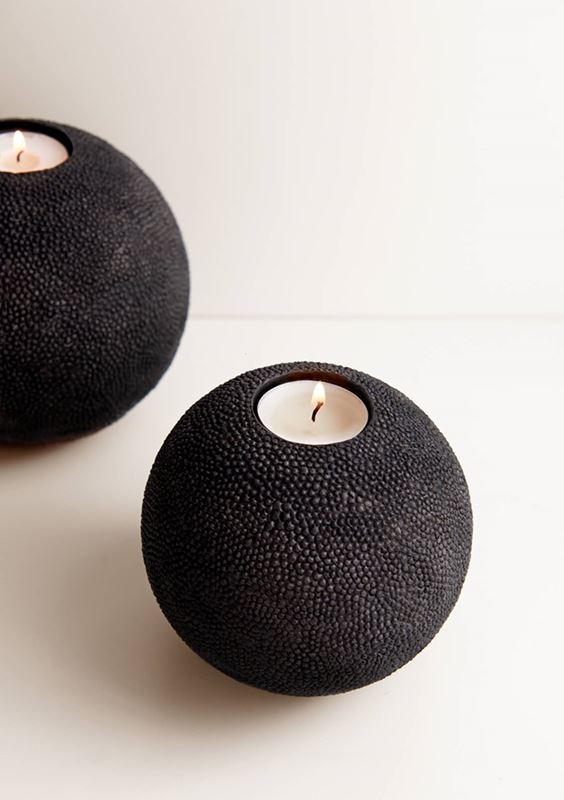 Moonsand läcker klotformad ljusstake alternativ ljushållare tillverkad i svartfärgat tåligt polyresin.