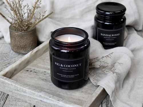 Ljus i glasburk med lugnande doft med söta toner av fikon och kokos.
